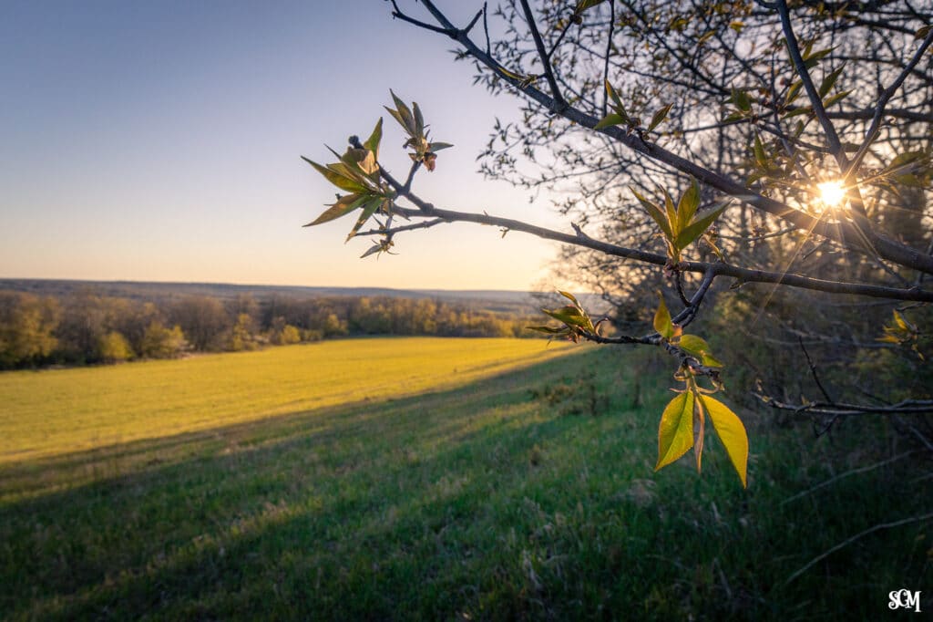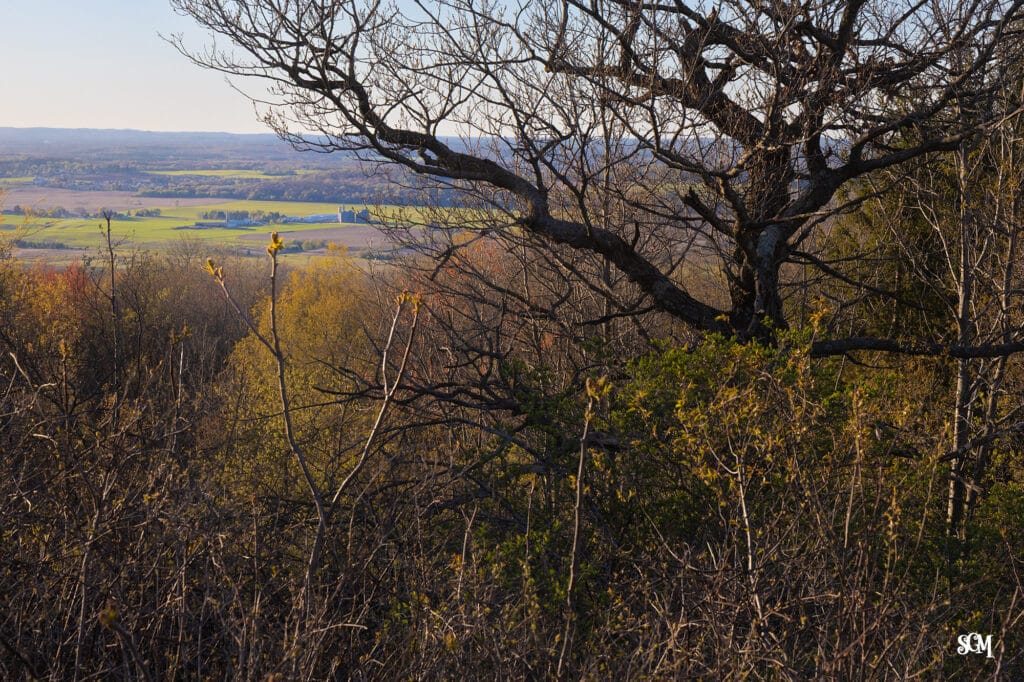 The new acreage sits to the north or above the park’s existing footprint. The photos, provided by Skillet Creek Media, offer some of the first views of the new acreage. From the southern field, the Baraboo Hills roll out in every direction. The potential for a full panoramic viewpoint is there. Right now, the land shows its agricultural past: a small parking area, some farm remnants, no facilities, and no developed trails.